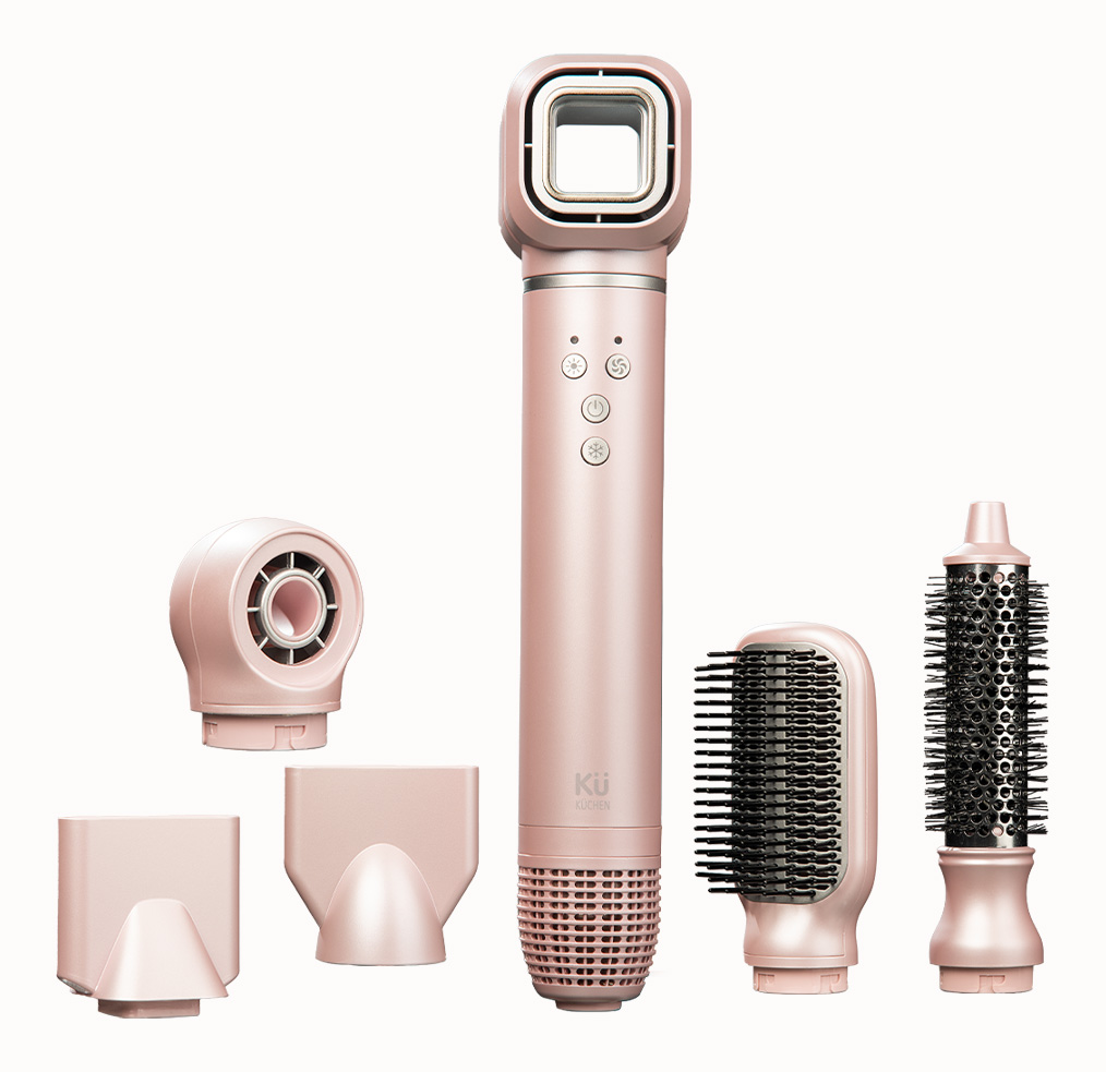 Premium Accessories: Includes smoothing comb, hairbrush, curling comb, and styling nozzle.