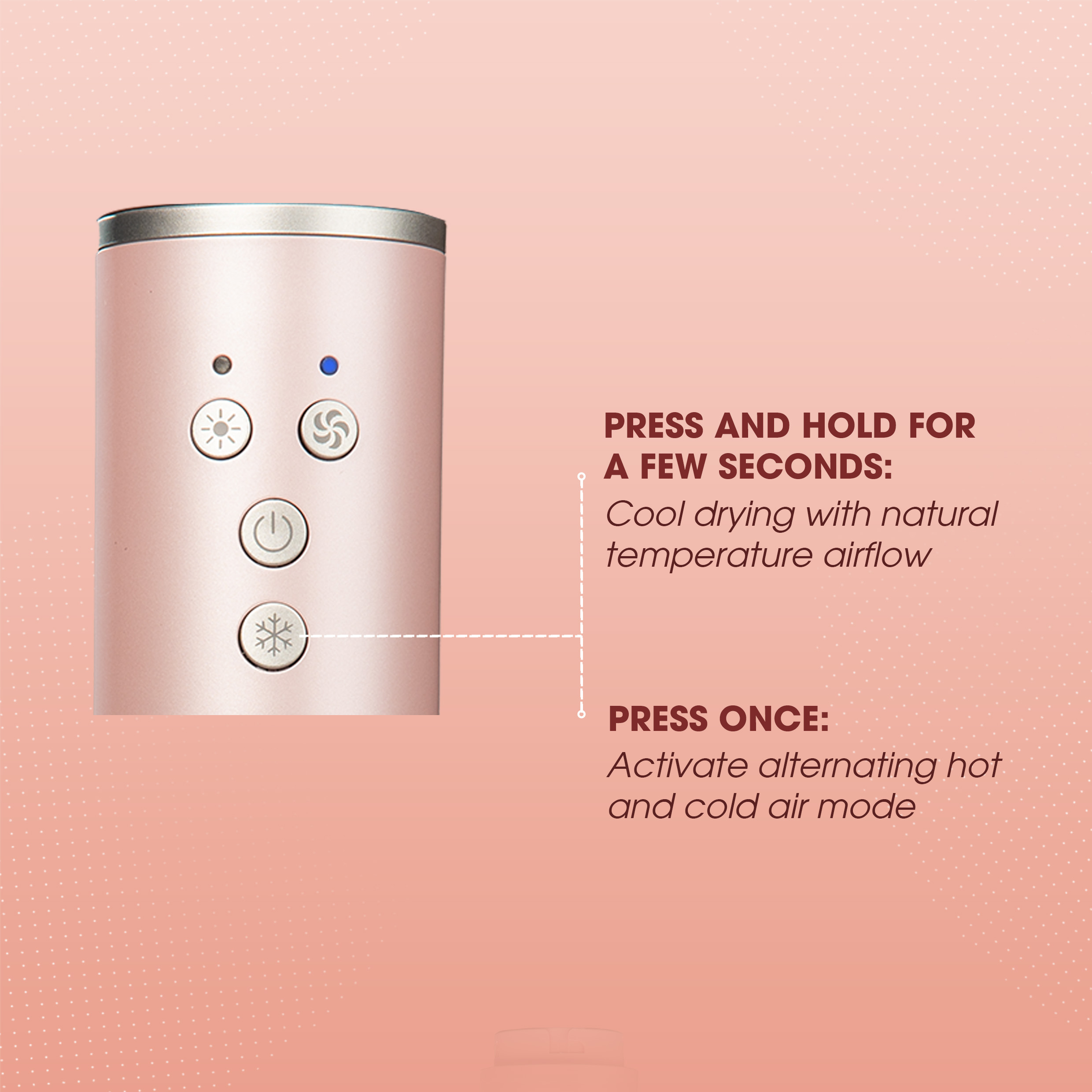 Airflow & Temperature Settings: 3 airflow levels with high air volume, 4 temperature levels for versatile styling.