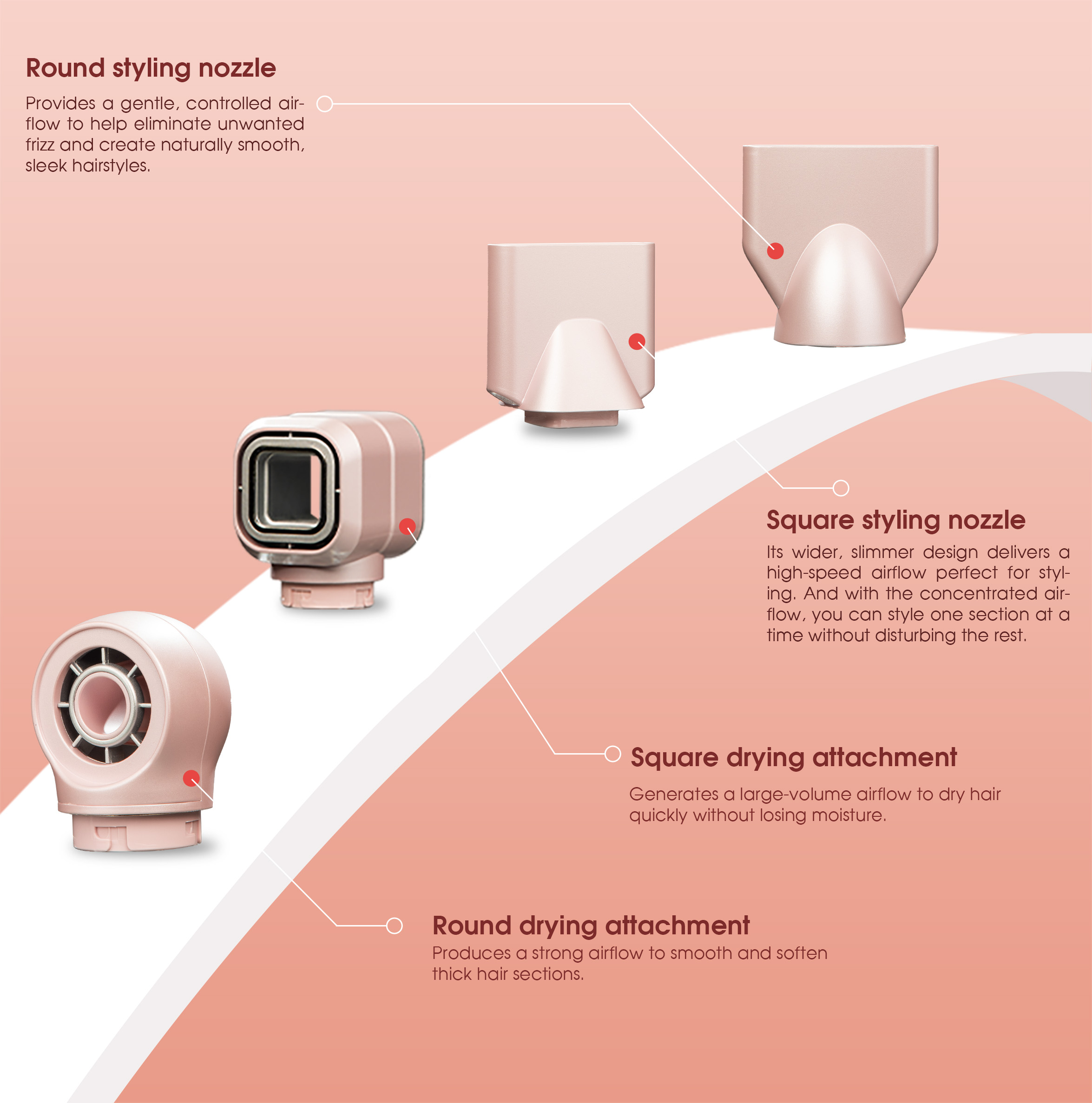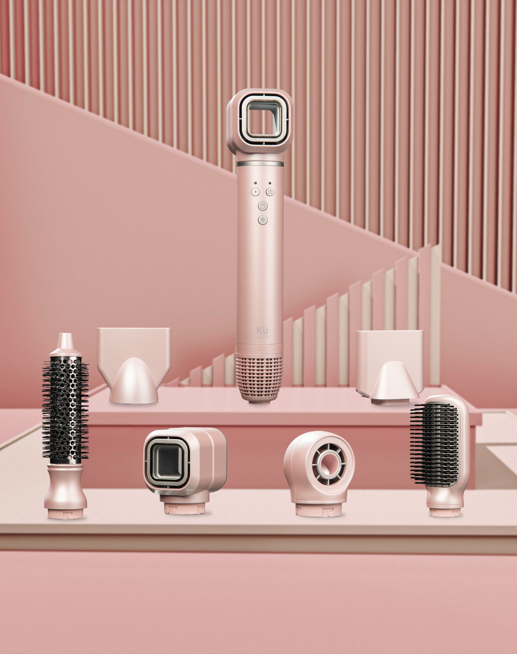 Premium Accessories: Includes smoothing comb, hairbrush, curling comb, and styling nozzle.