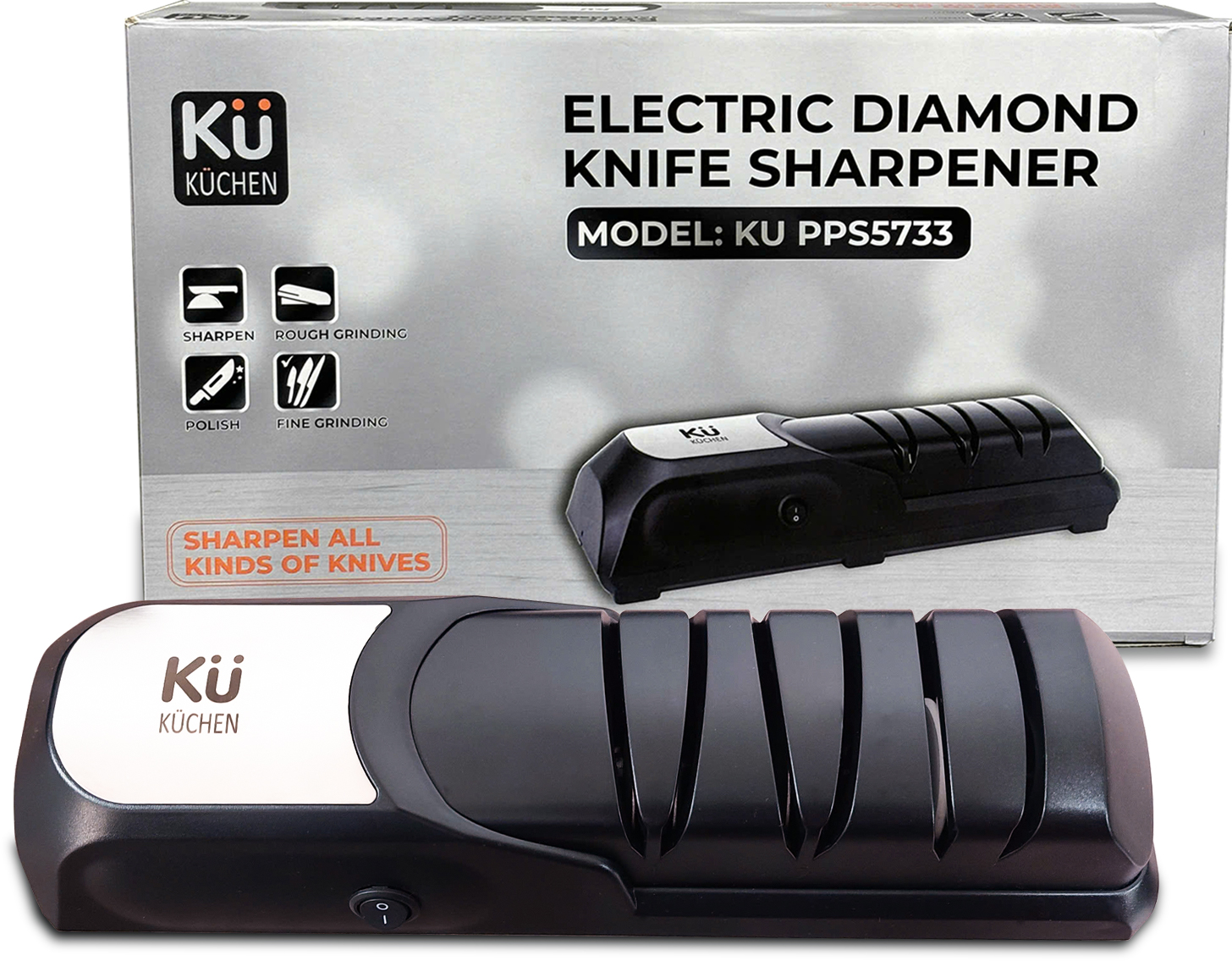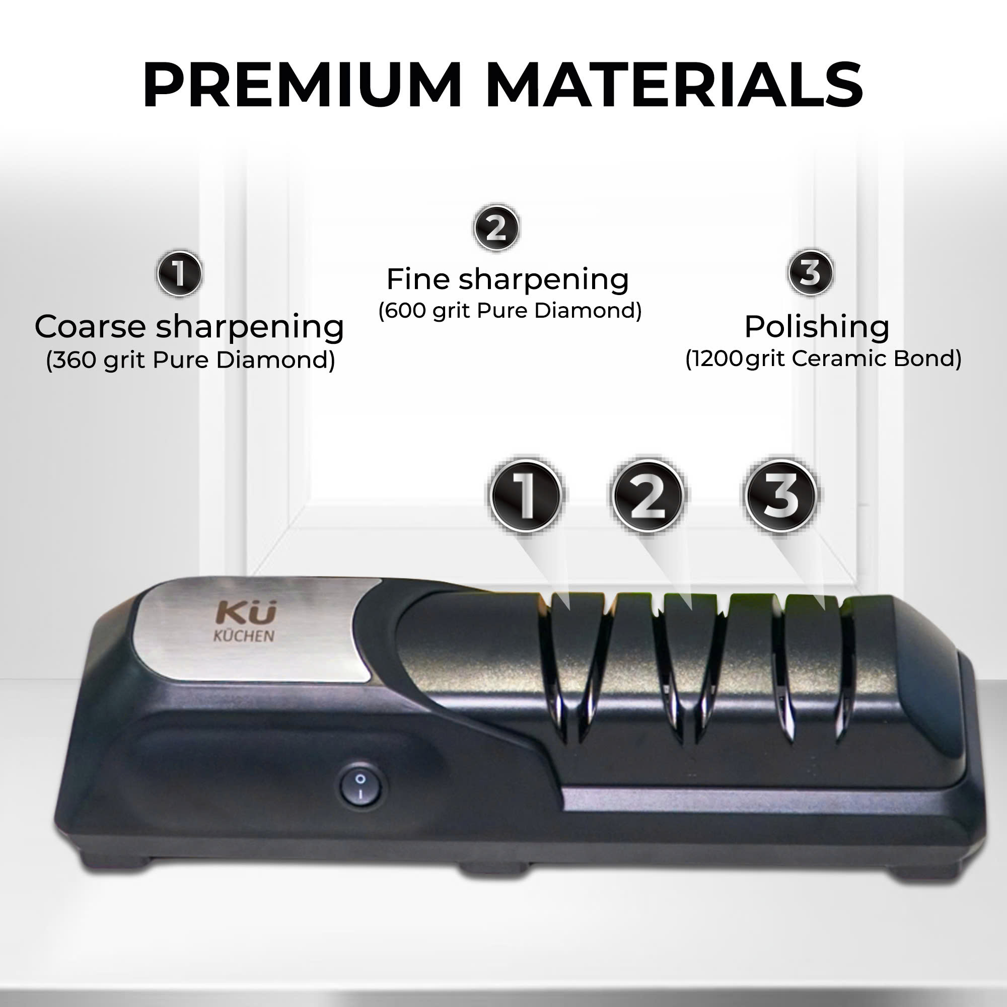 Grit sizes: 360 (coarse), 600 (fine), 1200 (polishing) – delivering outstanding sharpening efficiency, even for hard steel and ceramic knives