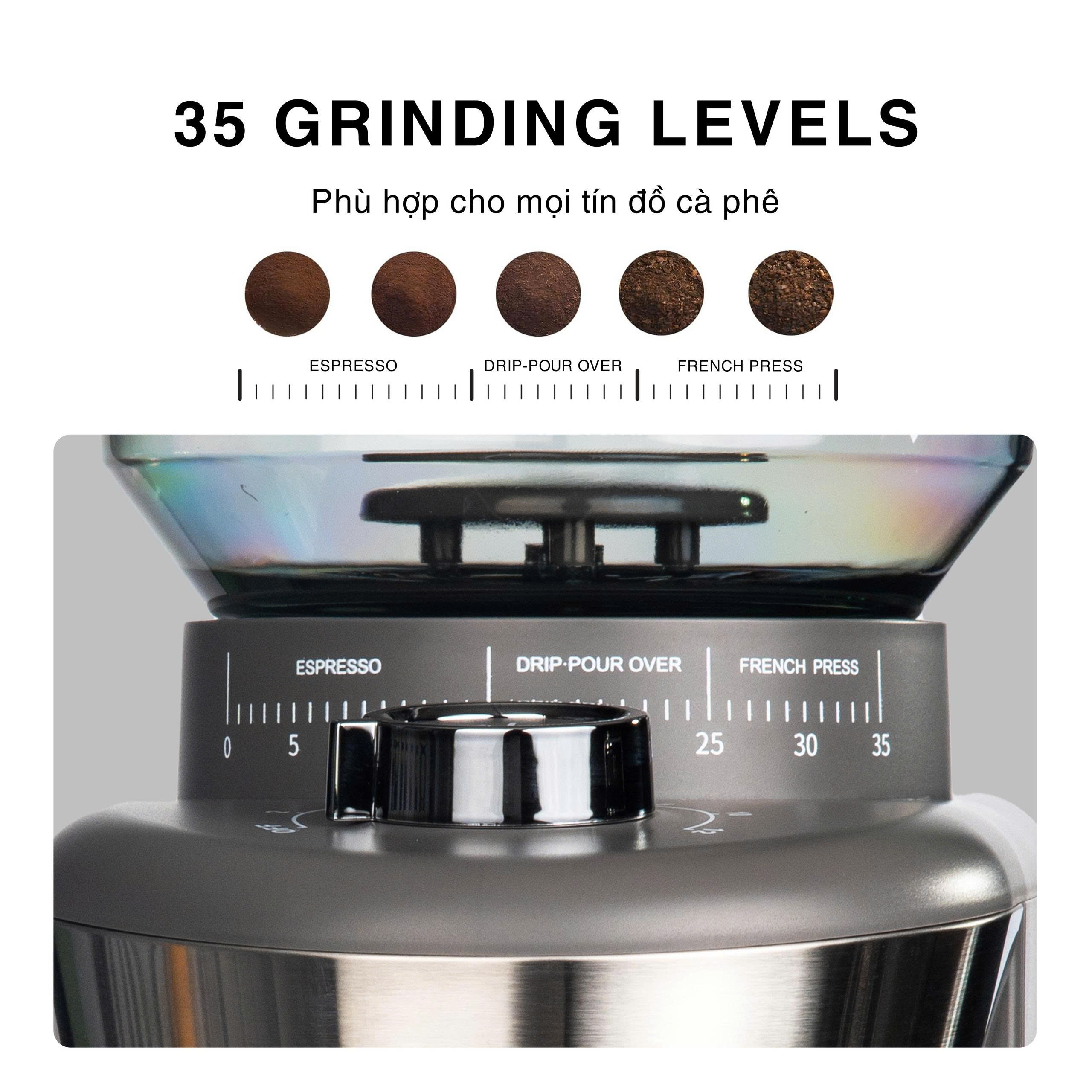Grinding Settings: 35 adjustable levels for precise control, from coarse to fine