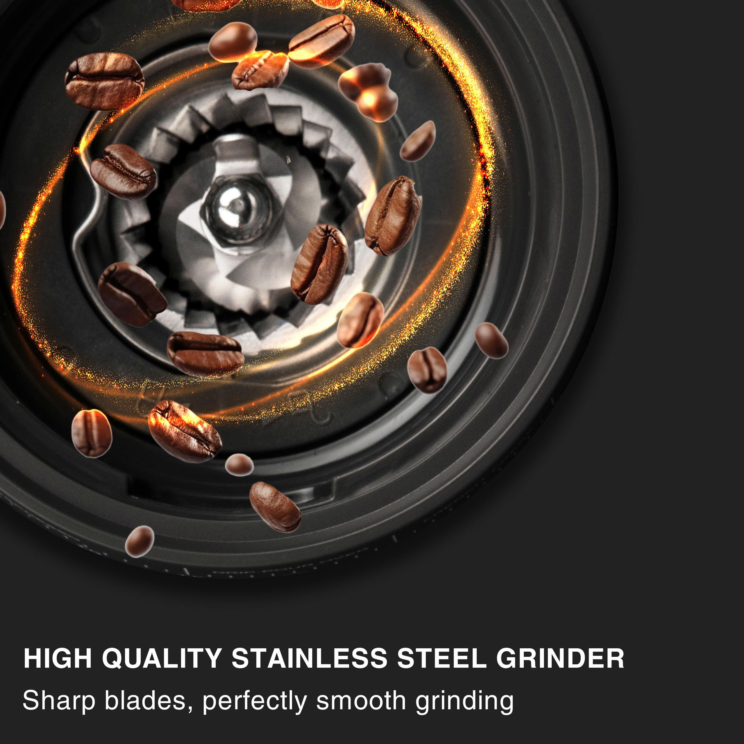 Stainless Steel Burrs: Ensures uniform grinding for optimal extraction