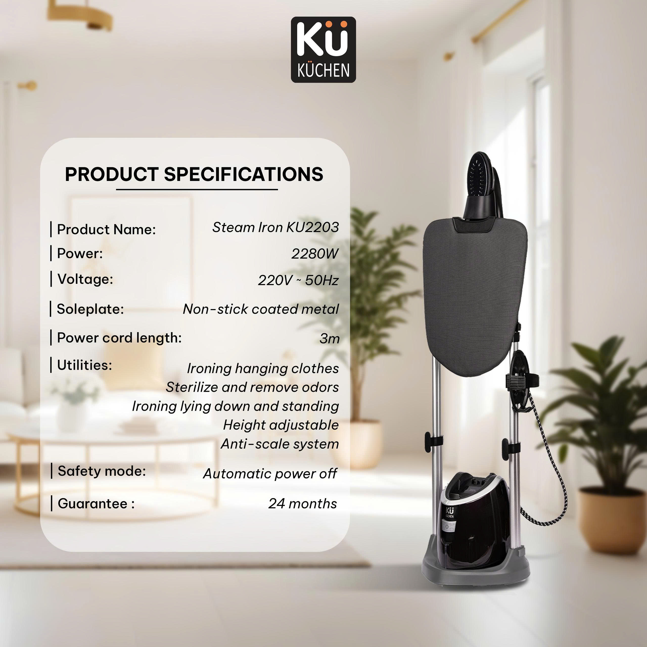 - Large Detachable Water Tank: 1.2 L for long, uninterrupted ironing sessions.