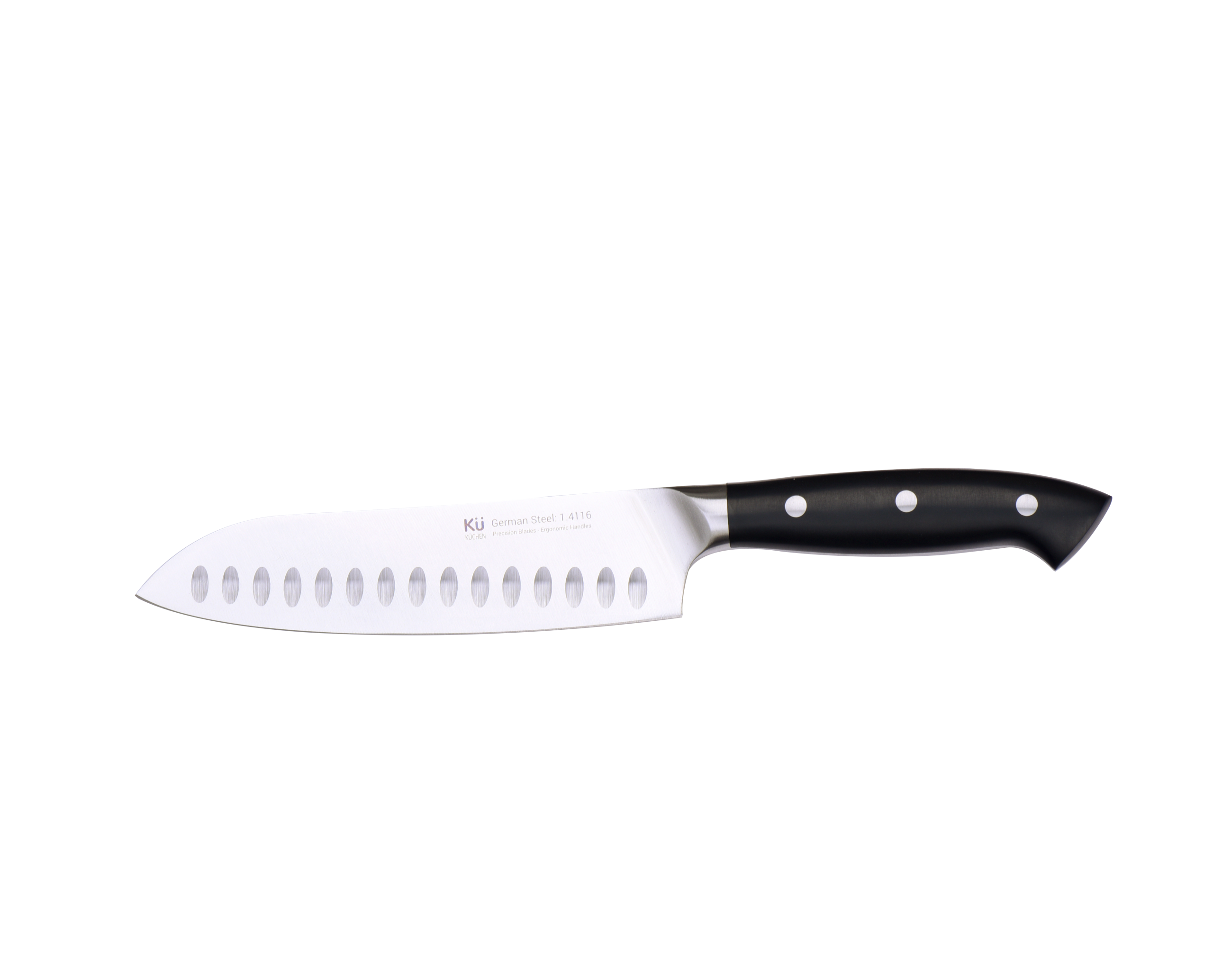 • Santoku & chef knives with anti-stick groove for effortless cutting