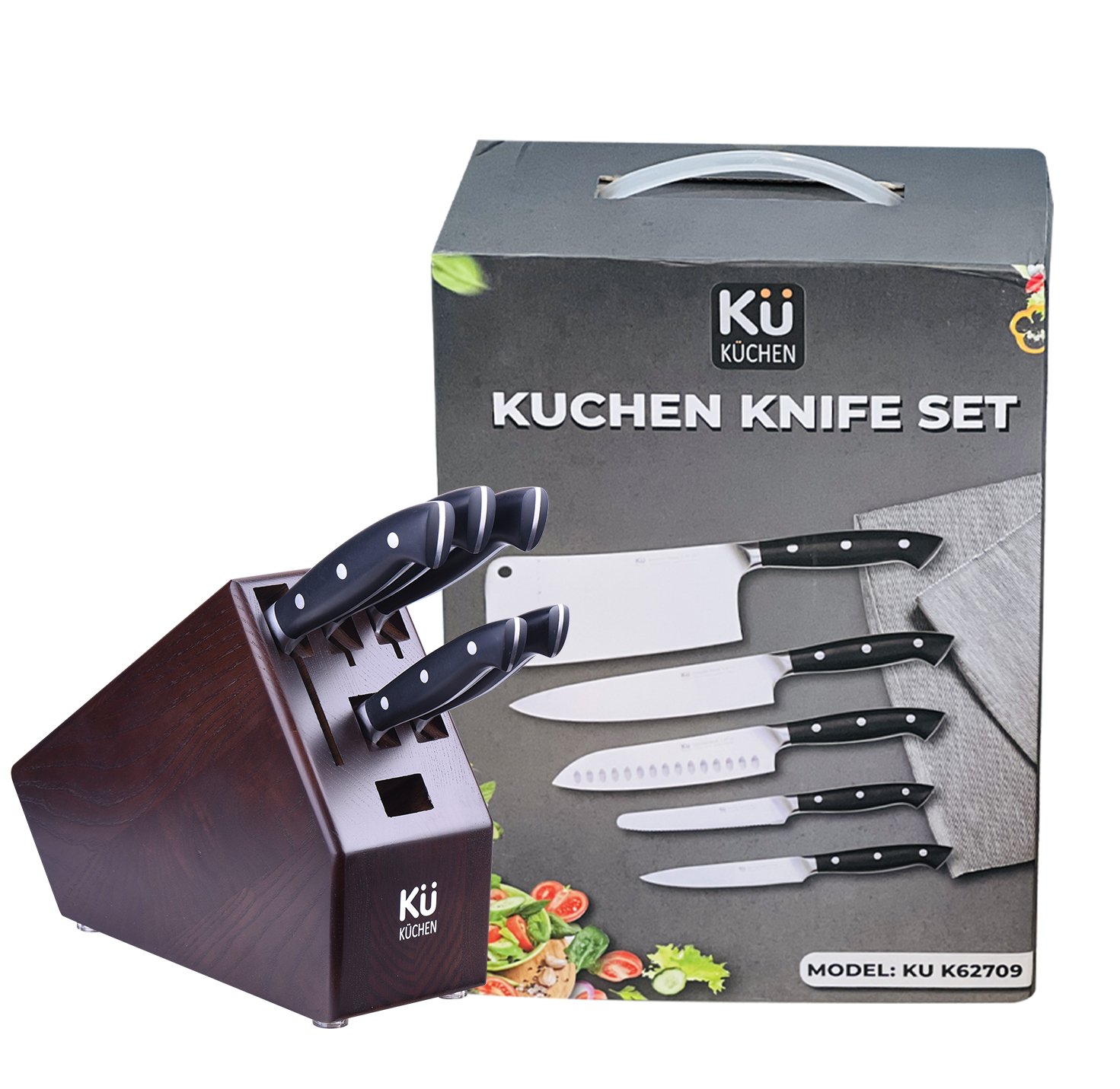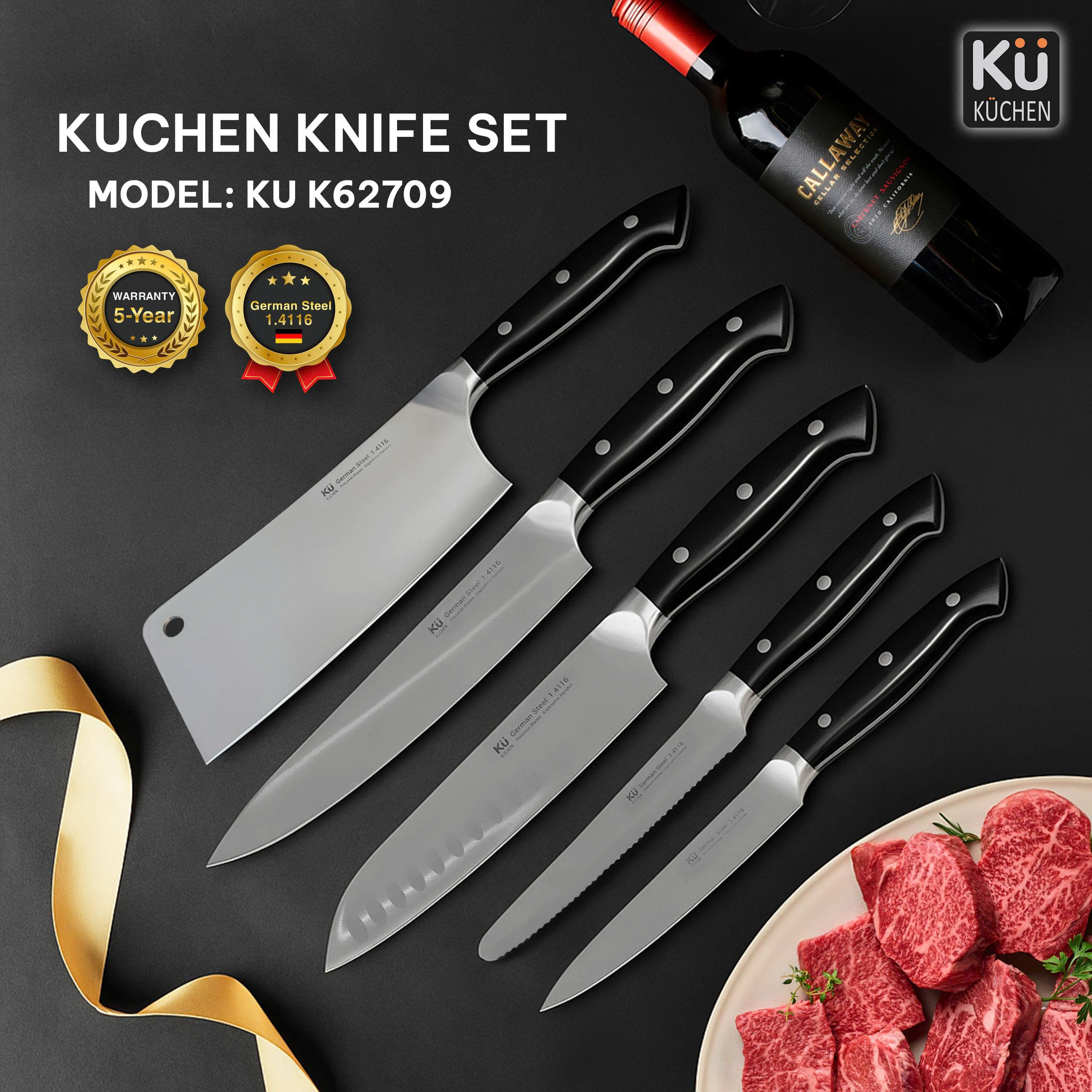 • 5 versatile knives for all kitchen tasks: chopping, slicing, peeling, and more