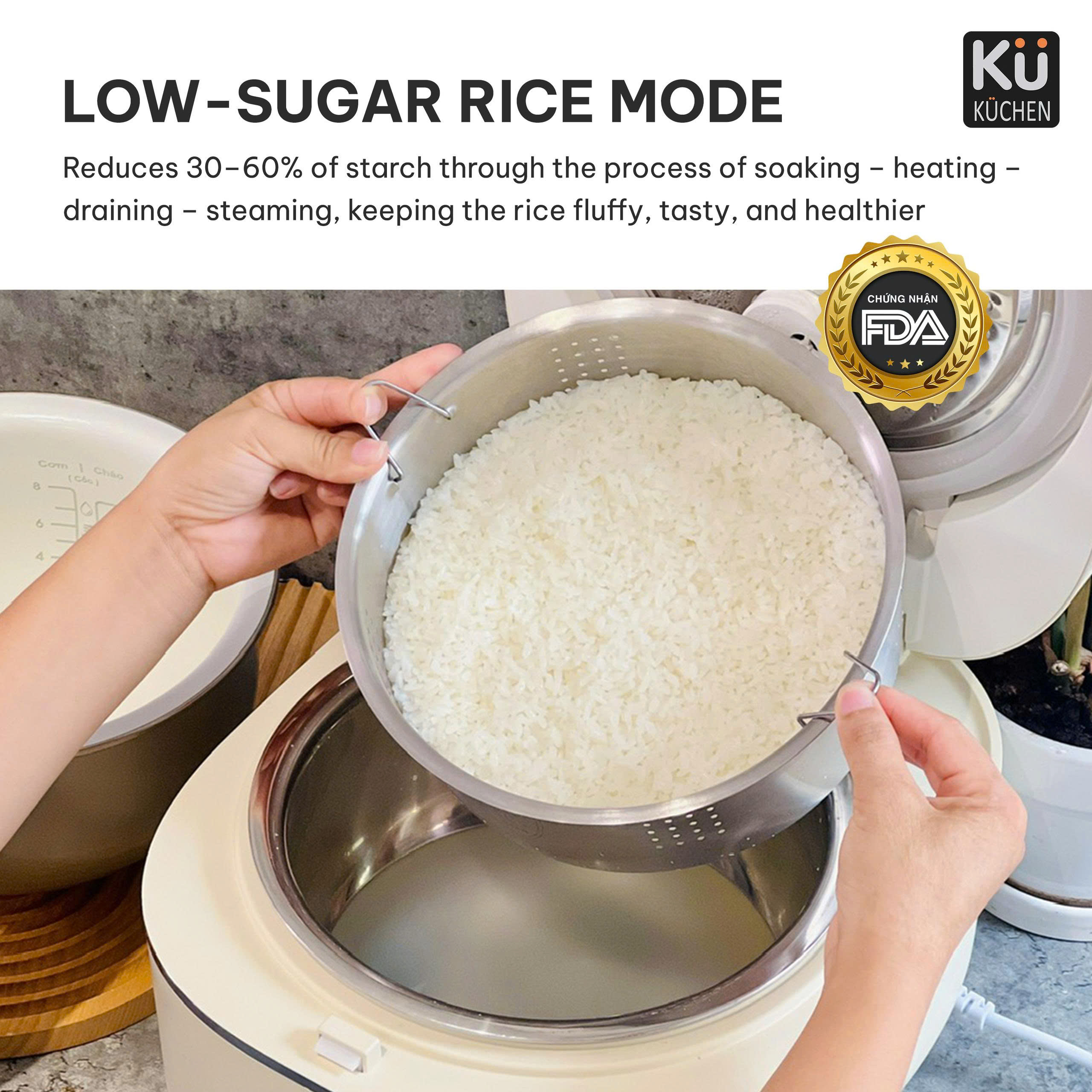 • 2-in-1 Function: Acts as steamer and sugar-reducing rice cooker