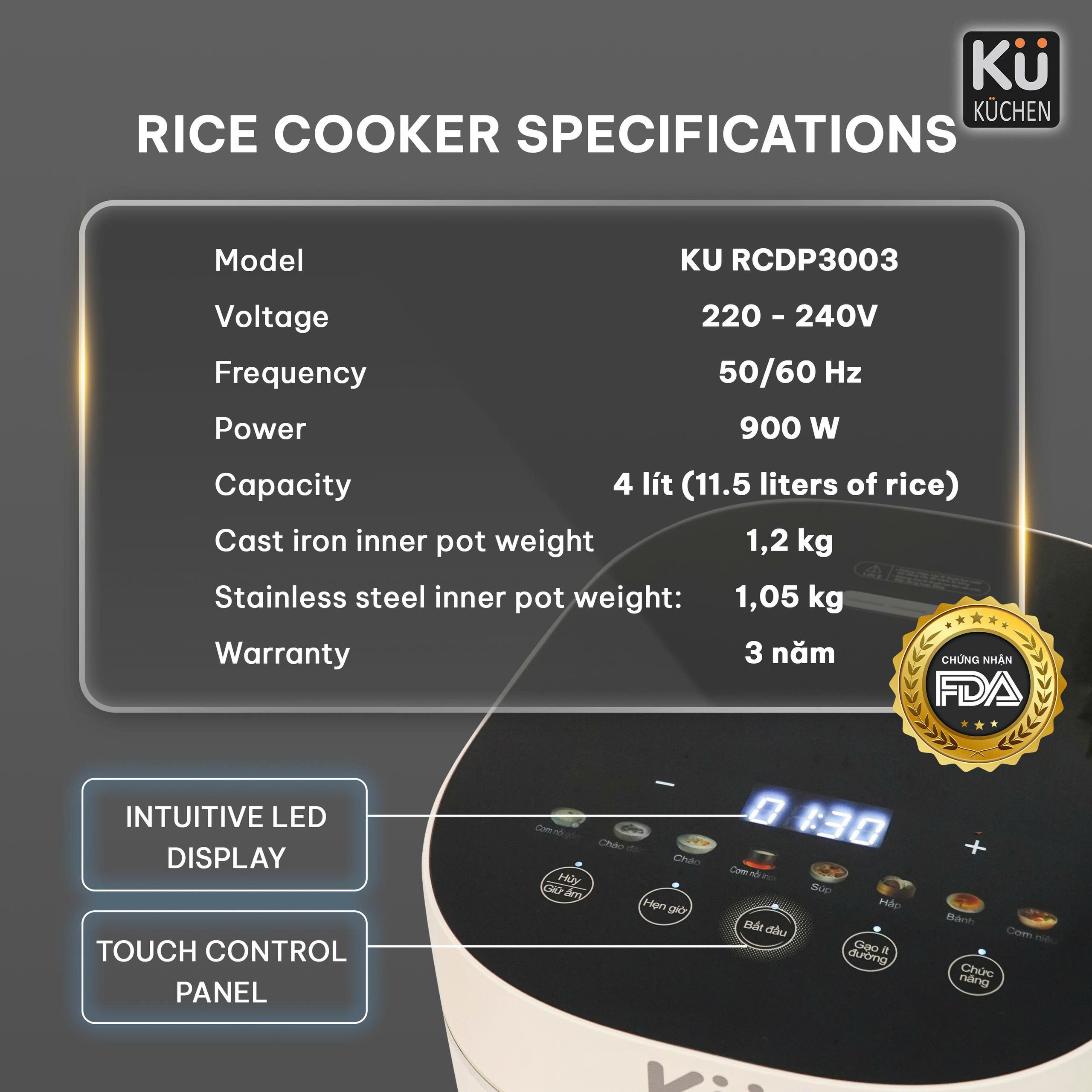• Dual premium pots: cast iron & stainless steel for fluffy, even rice.